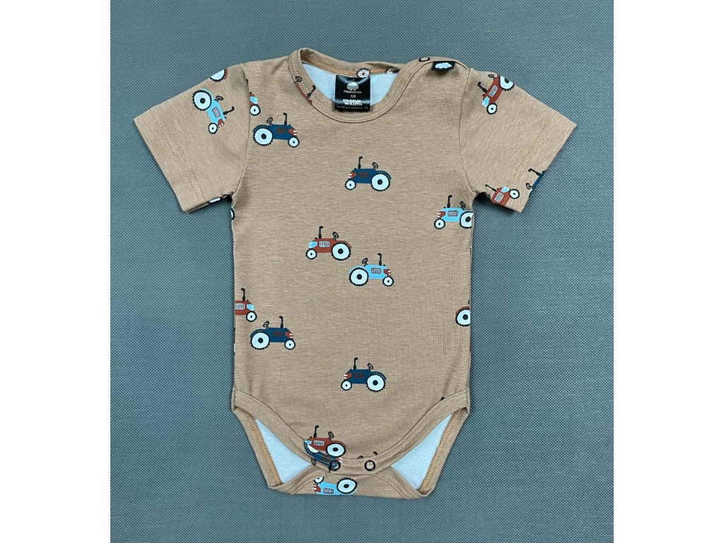 Kojenecké body s krátkým rukávem Traktor hnědá