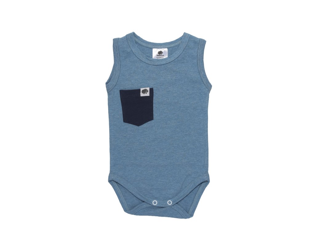 Kojenecké body tílko pro miminka Blue s kapsičkou by nemělo chybět v žádné letní výbavičce miminka. Body tílko se zapínáním na patentky modré barvy je krásně doplněno o funkční kapsičku na hrudi. Jednoduchý koncept tohoto oblečení pro miminka nejen skvěle vypadá, ale je vyroben i z vynikajícího materiálu, ve kterém se vaše miminko bude cítit doslova jako v bavlnce. Body tílko pro kojence je vyrobeno z 95% bavlny a 5% elastanu. Modrá námořnická barva se hodí jak pro holčičky tak i pro kluky. Hippokids - malé věcičky pro velkou radost.