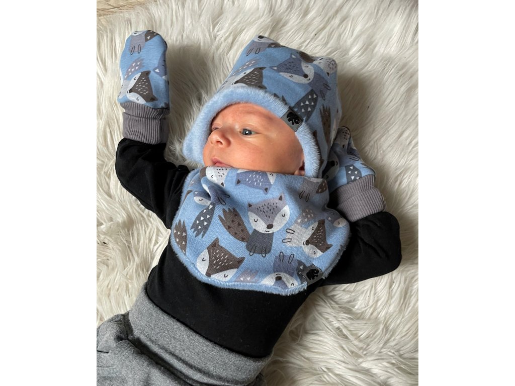 Představujeme Vám novou kolekci kojeneckého oblečení a oblečení pro děti Hippokids Fox blue. Zateplená ušanka spolu s kolekcí Fox blue vytváří krásný komplet. Čepice je vyrobena z 95% bavlny a 5% elastanu. Toto složení oblečení pro miminka nikde neškrtí, je krásně pružné a zároveň příjemné na dotek. Ideální do podzimního a zimního počasí.